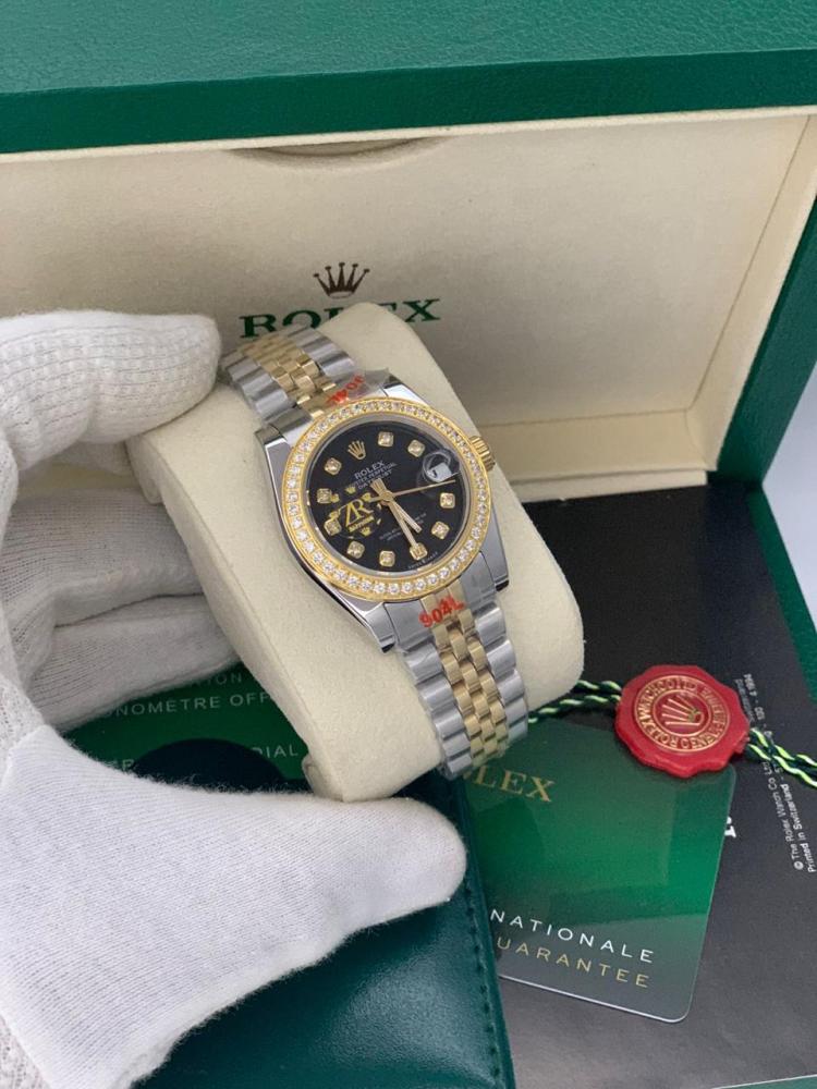 🖤✨ ساعة رولكس نسائية فاخرة - ميناء أسود ملكي ✨🖤